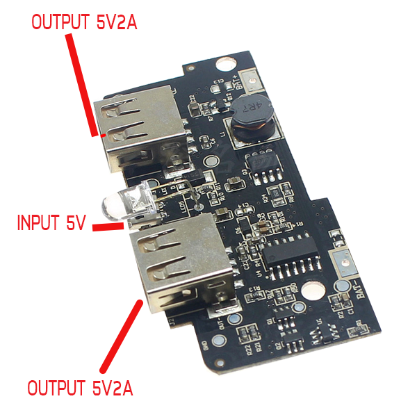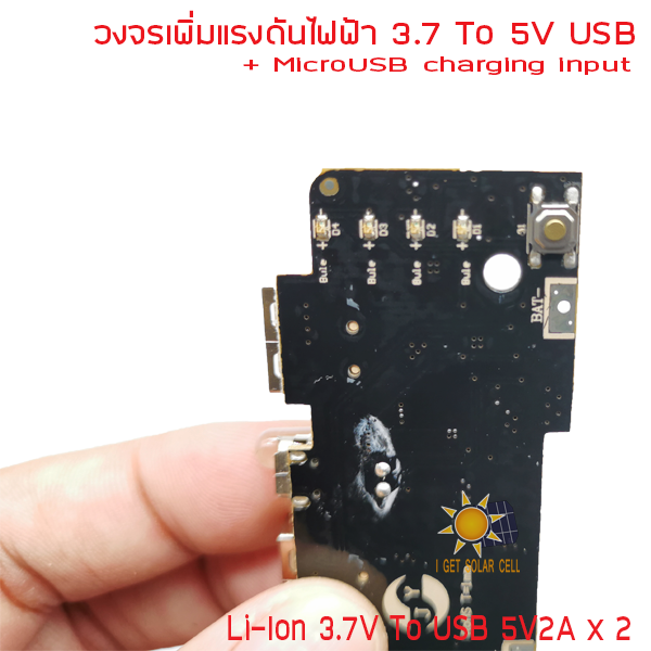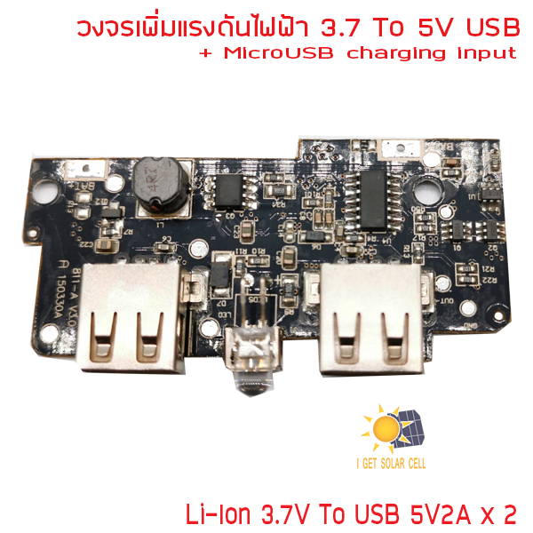 DC 3.7V to 5V USB Output charger 18650 battery 3.7V 5V 2A step-up module Rechargeable 2X USB โมดูล Step up พร้อมวงจรชาร์จ แปลงไฟจาก 3.7 เป็น 5V กระแสสูงสุด2A สำหรับแบตเตอร์รี่ 18650 เอาต์พุตแบบ USB 2 ช่อง ช่องละ 2A Product Features:
